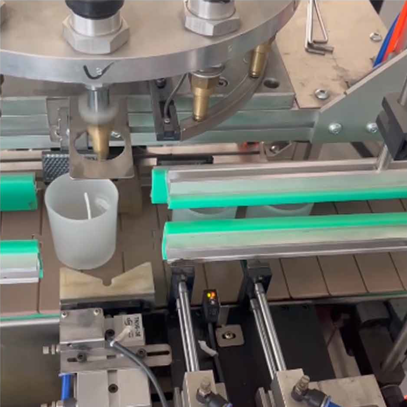 Zaprojektowano specjalnie do głównych procesów wkładania knota "ddhhh i pozycjonowania "ddhhh w produkcji świec w szklanych słoikach.